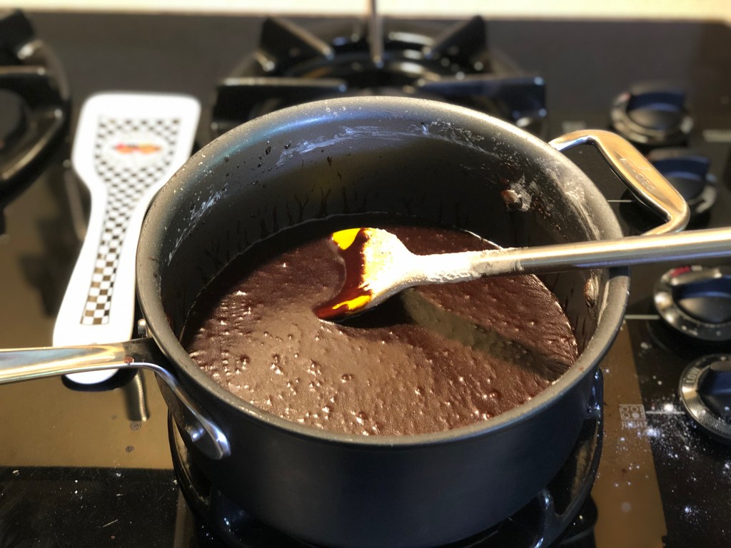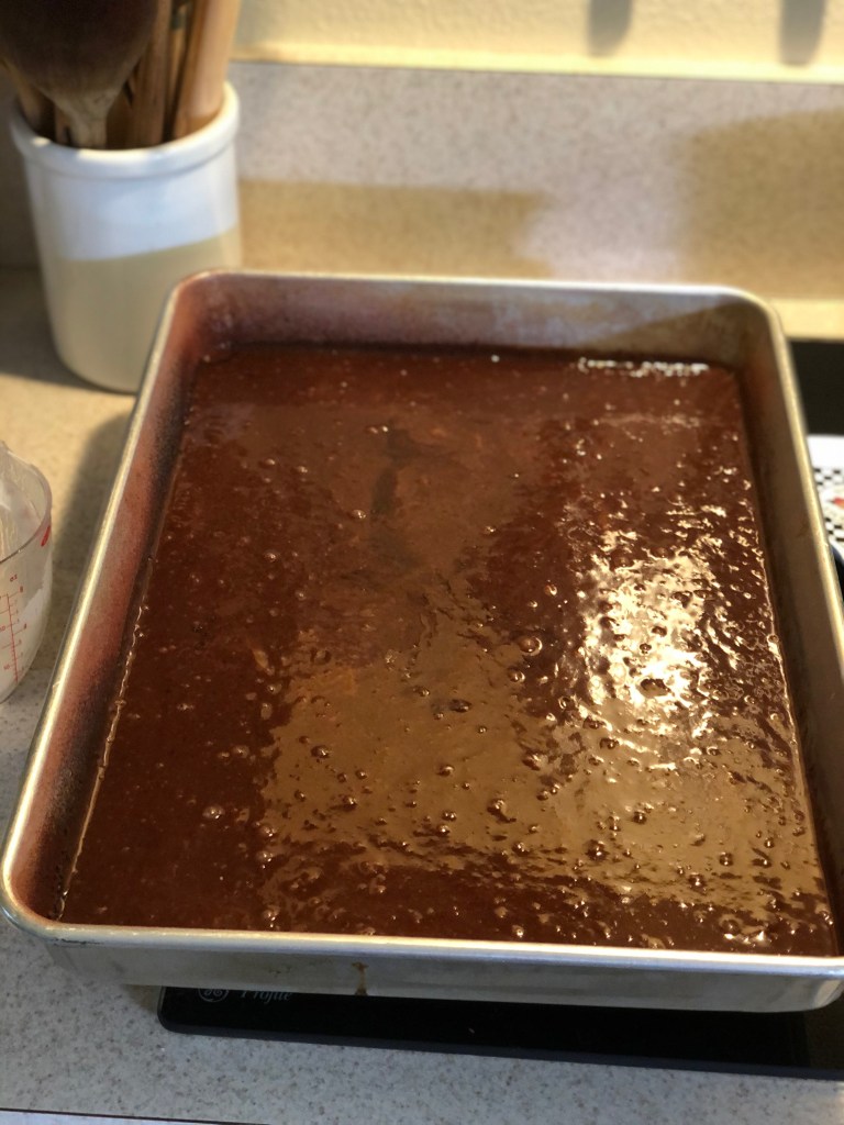 When I was a kid (before I ever made it myself), I always preferred my mom’s version to my grandma’s. I’m not completely sure of the basis for my preference but there was an aesthetic reason, the chocolate frosting appeared more smooth when my mom made it. When I started baking it, I thought mine was on par with my mom’s but maybe slightly better. Everything should improve with the next generation, right?